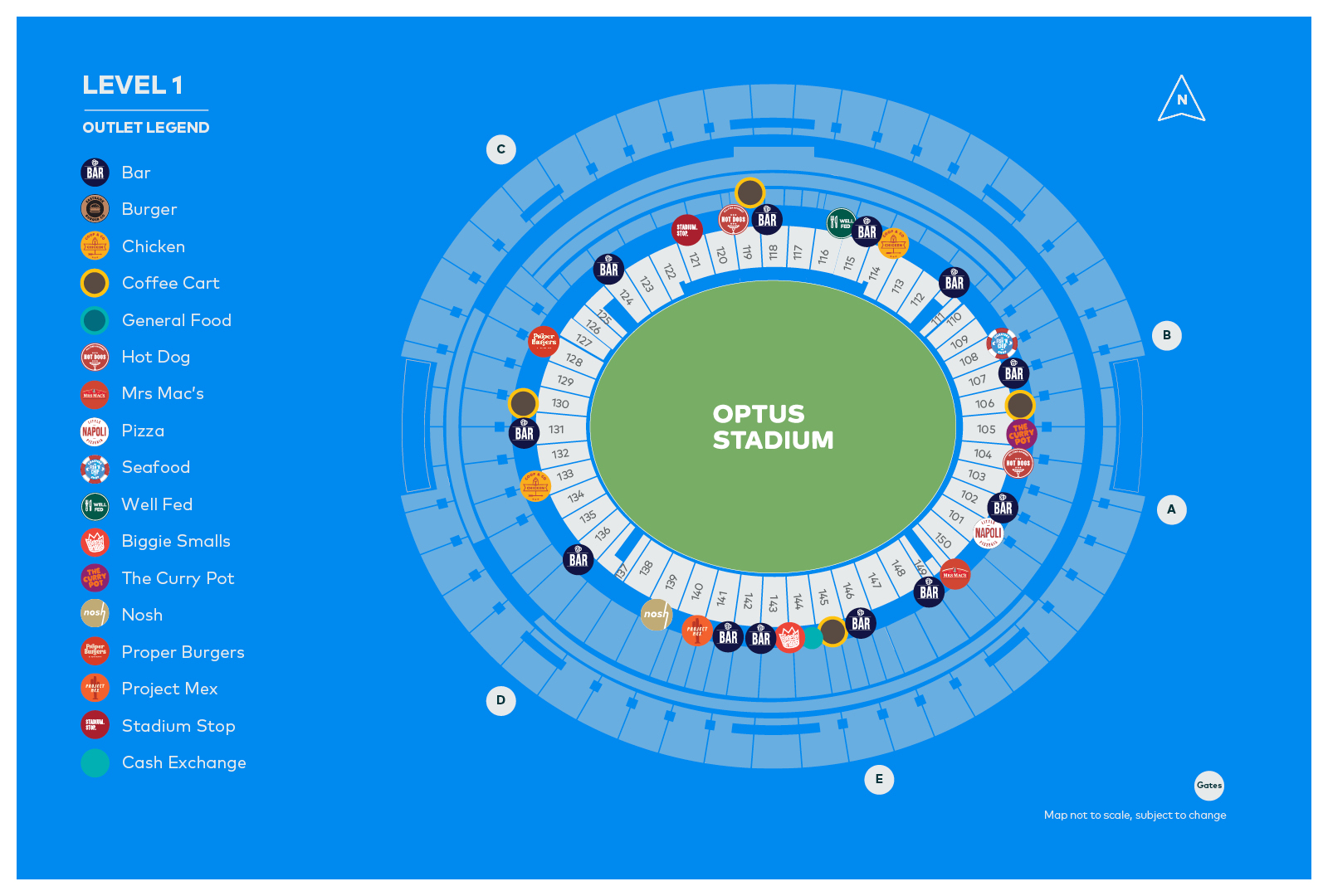 There are a range of food and beverage options available to fans on major event days on Level 1 & 5. From fan favourites such as a Mrs Mac's pie and sauce to Loaded Butter Chicken Chips, there's something for everyone!