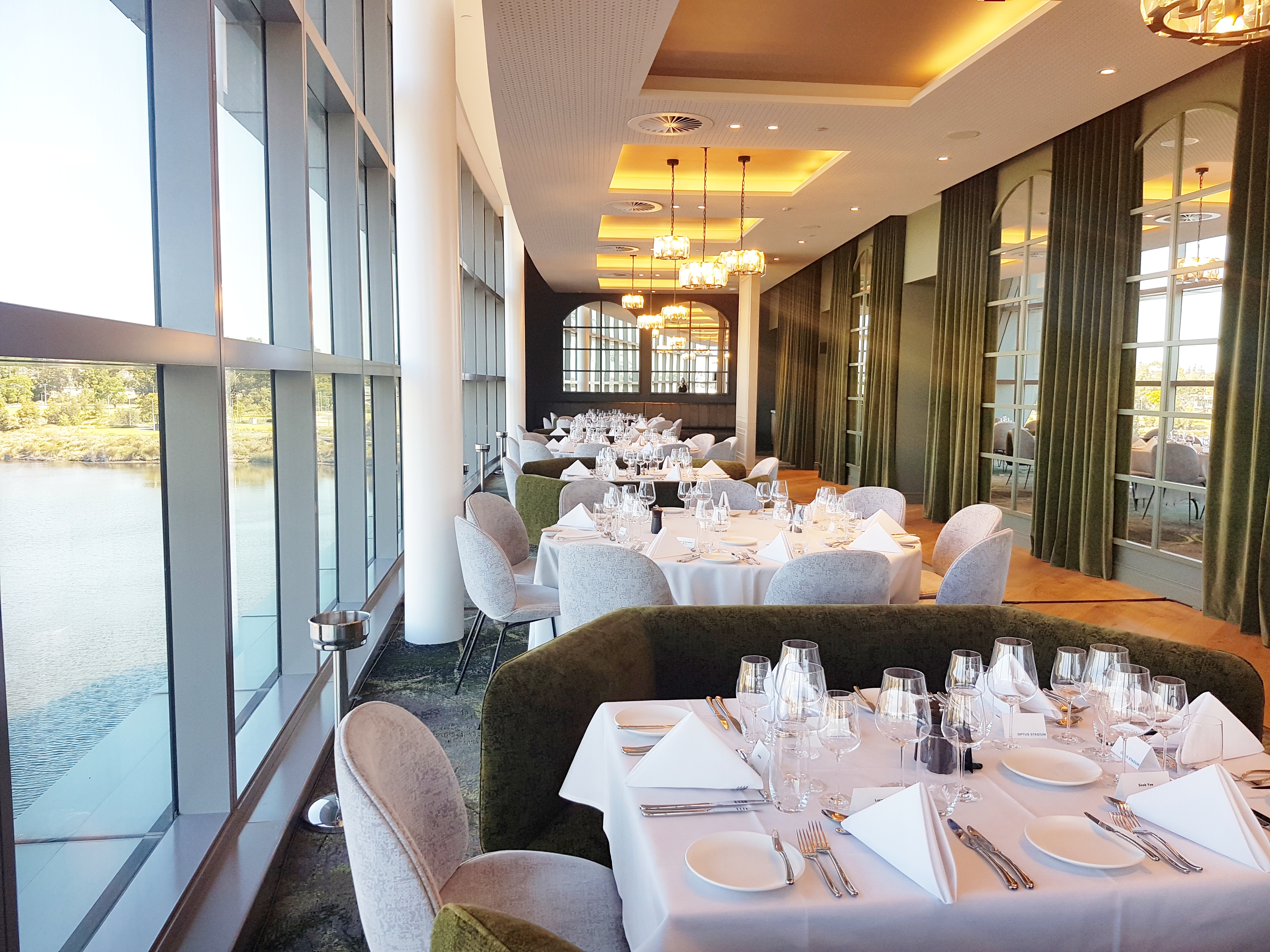 This luxurious space offers unrivalled river and city views and is perfect for high-end events including wedding receptions. Situated just outside the stadium on the level 1 concourse is the stunning Goodwood restaurant. Offering unrivalled water and city views and a decadent fit-out with crystal chandeliers and velvet finishes, this luxurious space is perfect for high-end events including wedding receptions.